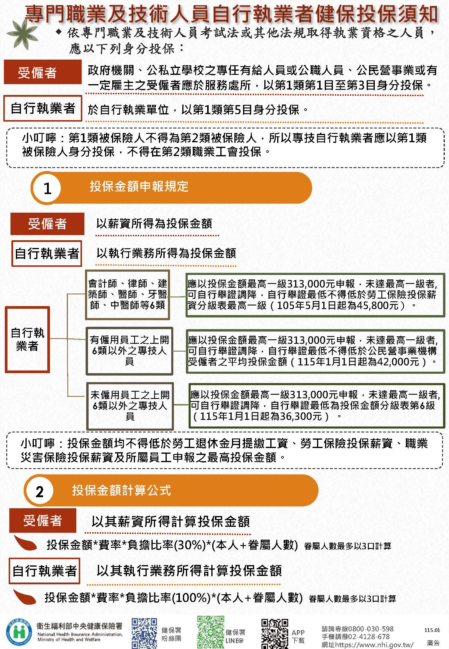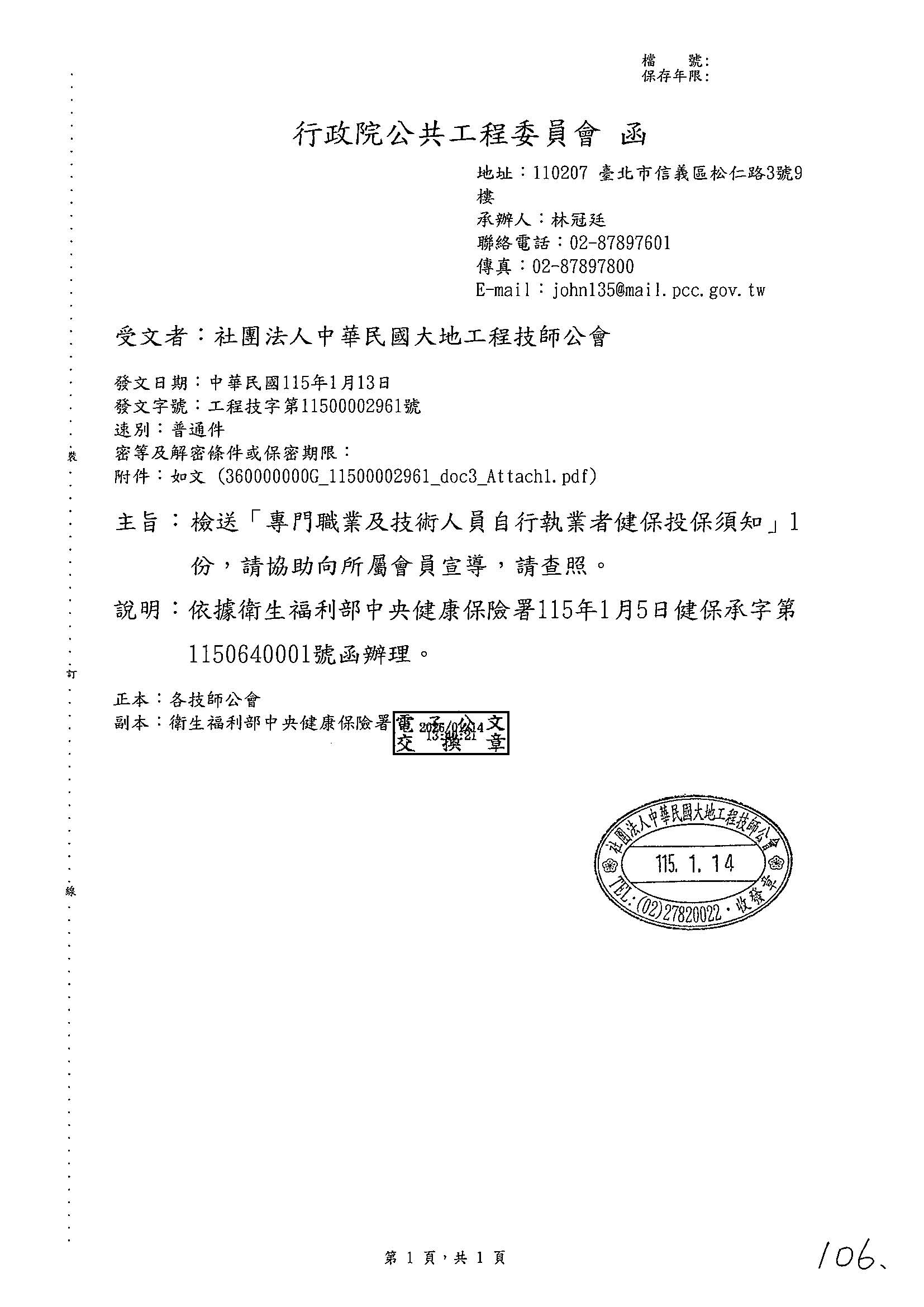 標題:行政院公共工程委員會宣導「專門職業及技術人員自行執業者健保投保須知」。